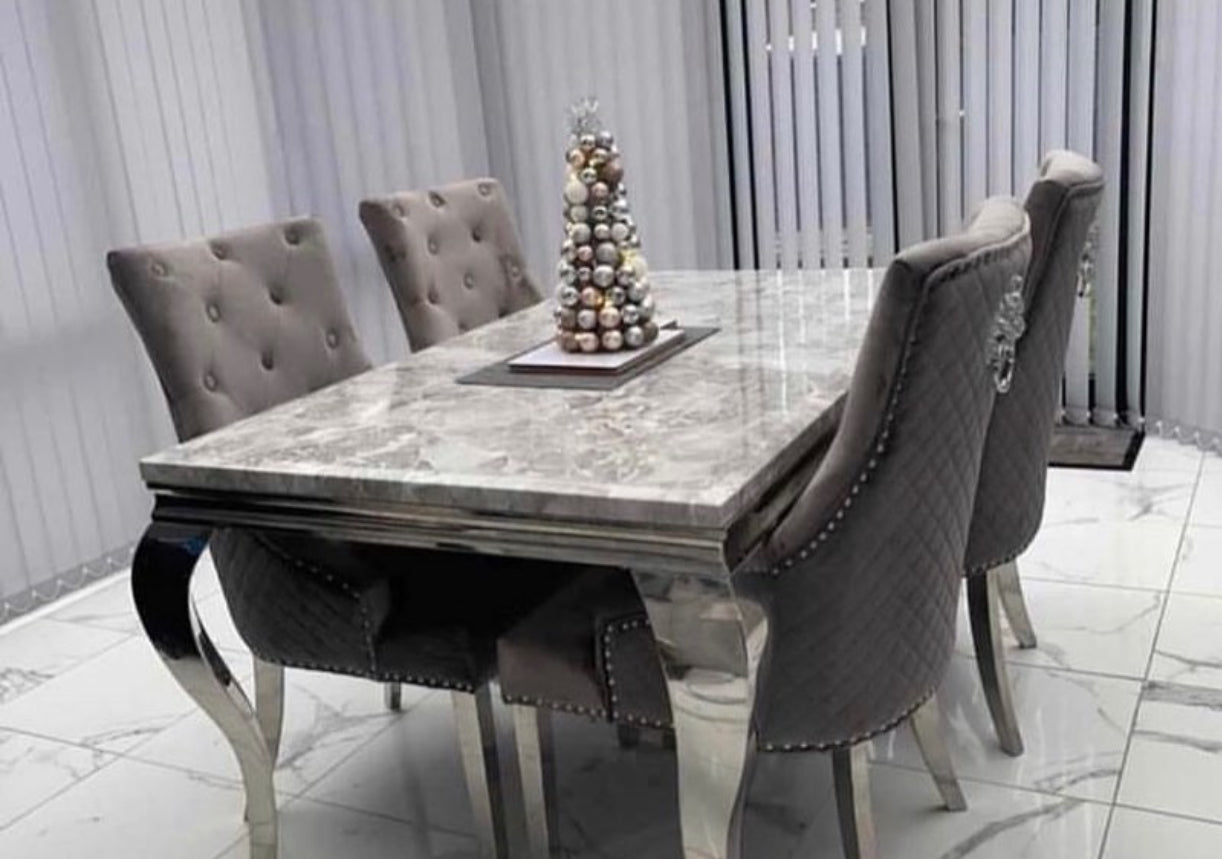 1.5M Louis Marble Dining Table & 4 Lion knocker Chairs